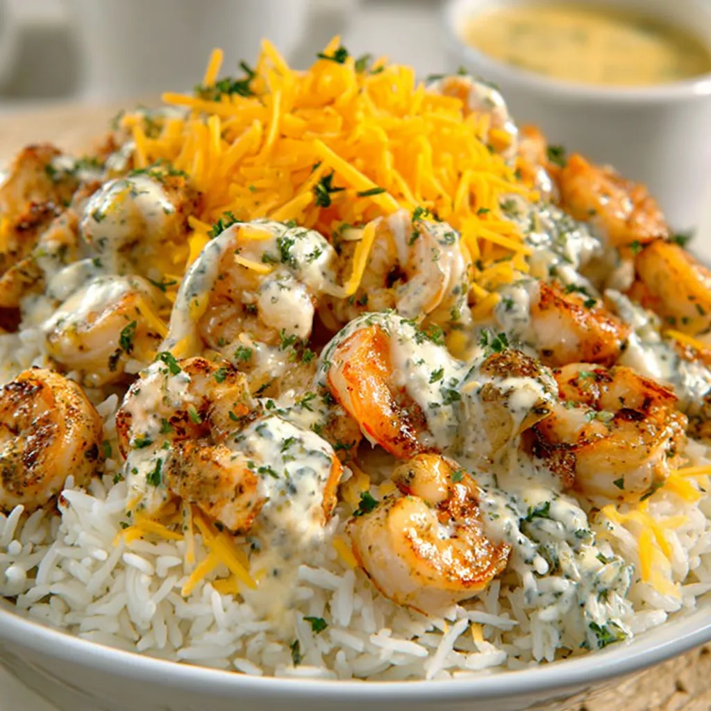 Okay, so imagine if Spanish arroz con pollo and Cajun shrimp and grits had a baby at a Mexican restaurant and decided to cover everything in melted cheese and call it dinner. That’s what we’re dealing with here. Arroz con Pollo y Camarones is basically seasoned rice cooked with chicken broth and spices, topped with perfectly seasoned grilled or pan-seared chicken, juicy garlic shrimp, and a blanket of melted cheddar cheese, all finished with fresh cilantro and maybe a squeeze of lime. It’s surf and turf over rice with Latin flavors and enough cheese to make it feel like a celebration. The rice is fluffy and flavorful, the chicken is juicy, the shrimp are garlicky and perfectly cooked, and the cheese brings it all together like edible glue. I made this for a dinner party once and someone asked if I was opening a restaurant. Another person went silent for ten minutes because they were too busy eating to talk. This dish inspires business proposals and voluntary muteness.