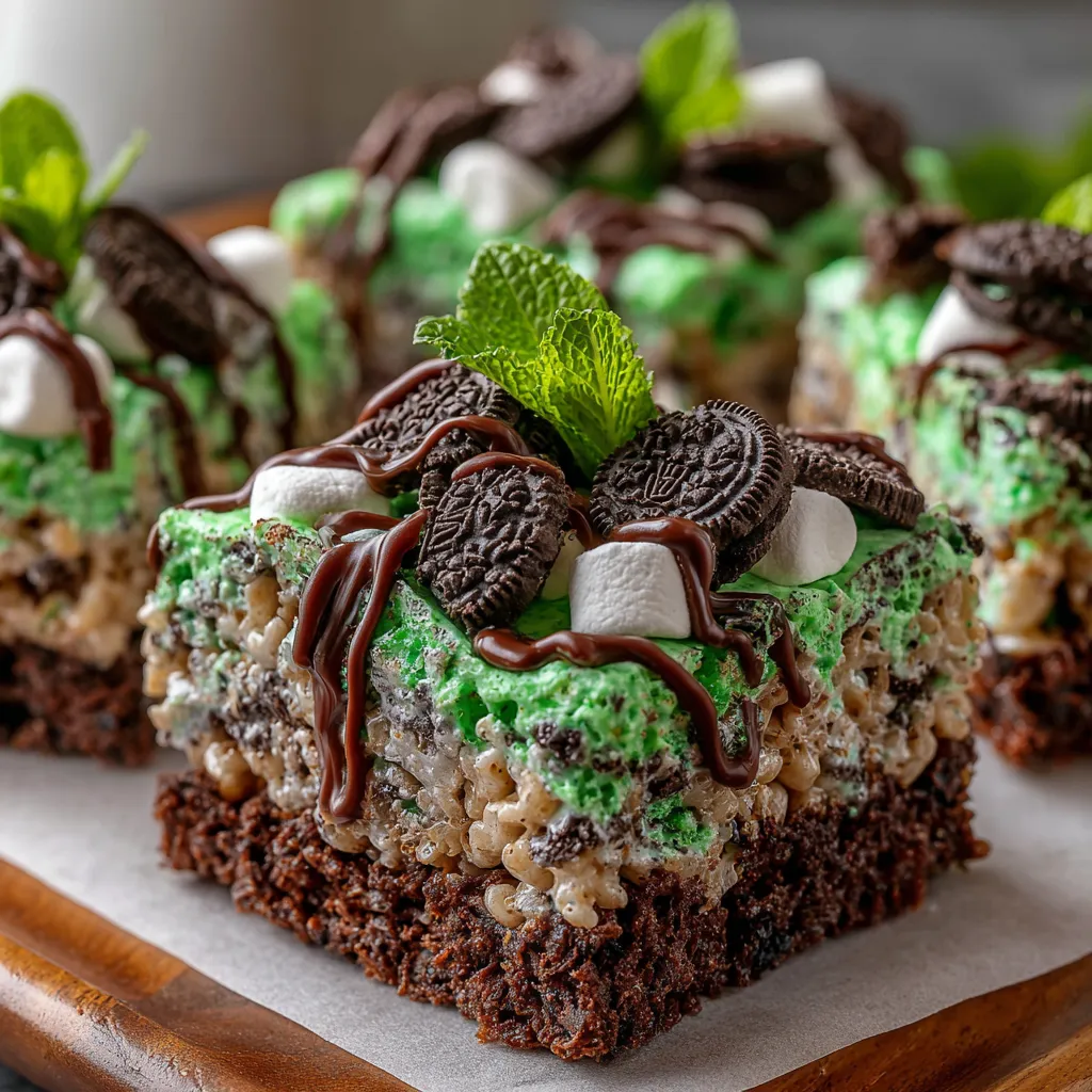 Someone looked at regular Rice Krispie treats and thought “these are fine, but what if we made them AGGRESSIVELY minty and added crushed Oreos?” Then they added green food coloring …