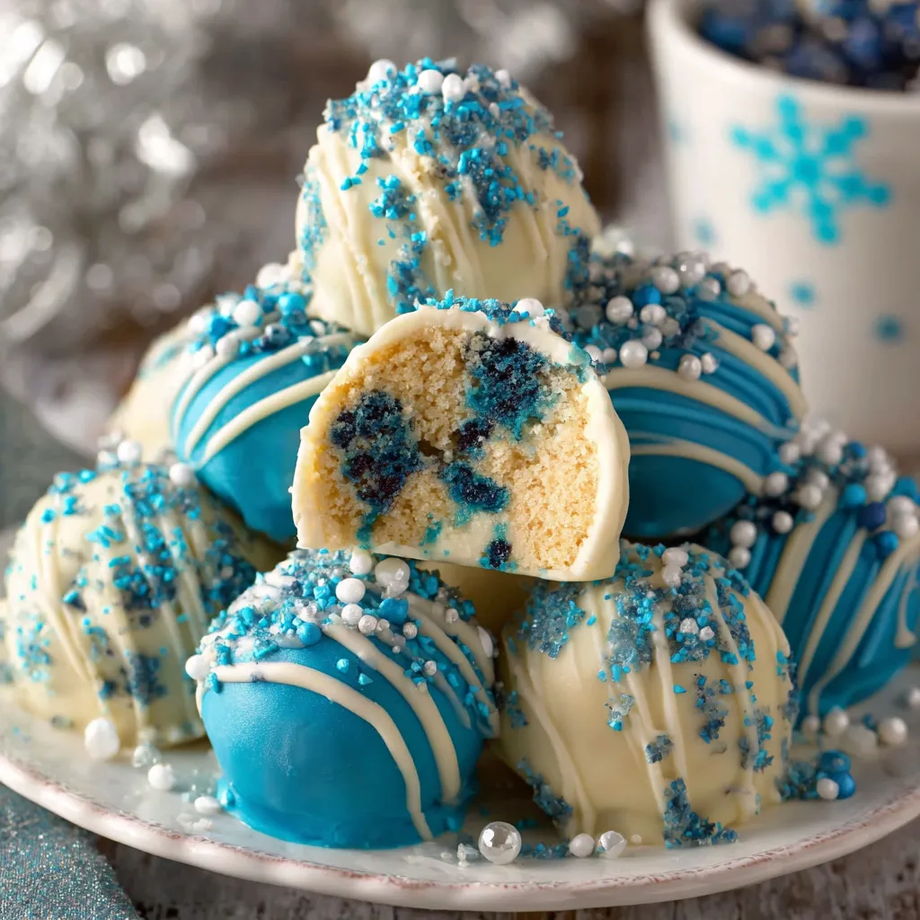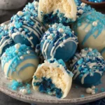 Okay, so imagine if a sugar cookie and a cake ball had a baby at the North Pole, and that baby decided to dress up in the most gorgeous winter blue you’ve ever seen, then got covered in white chocolate snowflakes and sprinkles. That’s what we’re dealing with here. Blue Christmas Truffles are basically creamy, cake-like cookie dough centers coated in smooth white chocolate, then dipped or drizzled in vibrant blue candy coating and topped with festive sprinkles that scream “I’m a winter wonderland in ball form.” They’re soft, sweet, rich, and look like edible Christmas ornaments. I made these for a holiday party once and someone asked if I’d ordered them from a fancy chocolate shop in Europe. Reader, I made them in my kitchen while wearing Grinch pajamas. Another person tried to pocket three extras when they thought nobody was looking. I saw you, Karen. These truffles inspire both awe and petty theft.