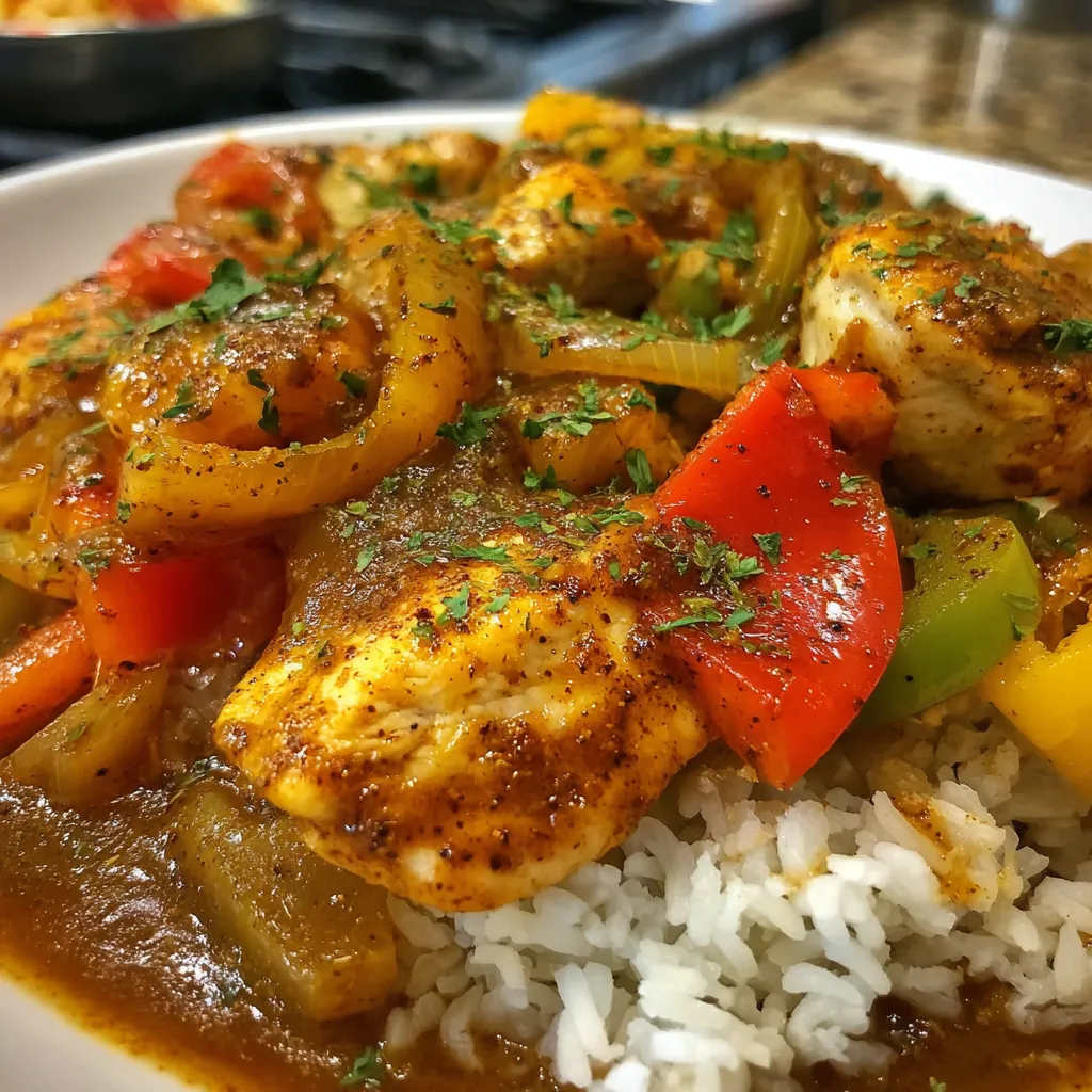 The holy trinity (onions, celery, bell pepper) provides aromatic depth and sweetness that balances the spice. Simmering the chicken in the gravy allows the flavors to penetrate the meat while the chicken releases its own juices, enriching the gravy further.