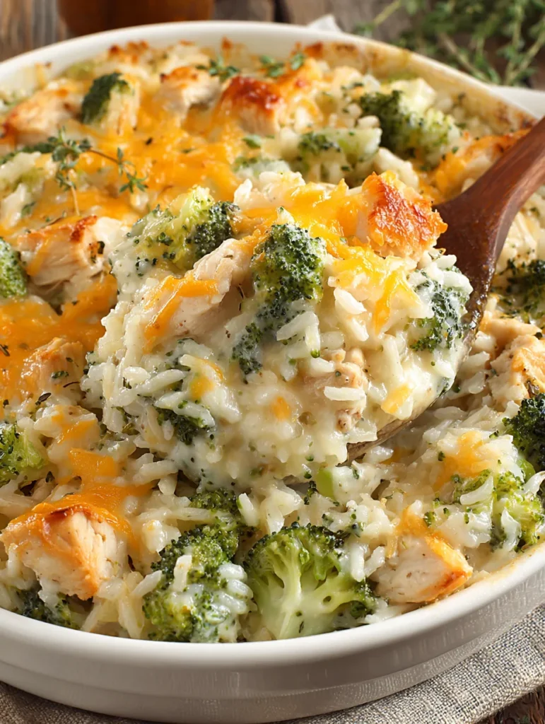 Someone looked at chicken, broccoli, rice, and cheese—four things that are already perfect on their own—and thought “what if we baked them together into one glorious casserole?” and honestly, that person understood the assignment on a molecular level. This is tender chicken, fresh broccoli, fluffy rice, and an obscene amount of melted cheese all bound together in a creamy sauce and topped with a golden, crispy layer. It’s what happens when you want a complete meal in one dish and don’t want to pretend you care about having separate side dishes. It’s the kind of casserole that makes people go back for thirds and ask for the recipe.