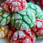 Okay, so imagine if a brownie and a powdered sugar snowball had a baby that decided to dress up in Christmas colors and show up looking like it just rolled through a winter wonderland. That’s what we’re dealing with here. Christmas Crinkle Cookies are basically soft, fudgy, brownie-like cookies rolled in powdered sugar that crack beautifully when they bake, creating this gorgeous crinkled effect that looks like snow-covered mountains. You make them in festive red and green (plus chocolate if you’re feeling extra), and they’re so photogenic they should have their own Instagram account. The texture is perfection—crispy outside, chewy inside, with that powdered sugar coating that looks magical. I made these for a holiday party once and someone asked if I’d ordered them from a fancy bakery. Another person tried to steal the recipe card right off my table. These cookies inspire thievery and false assumptions about my professional status.