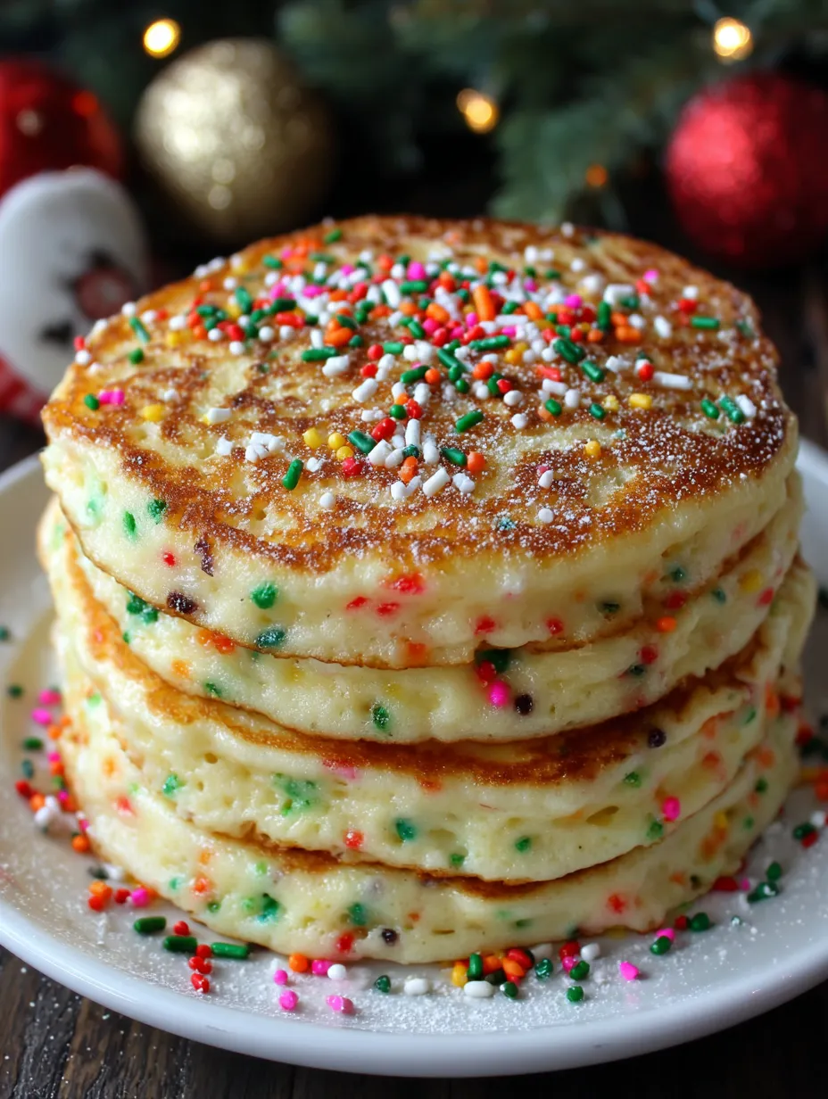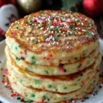 Okay, so someone looked at regular pancakes—which are already a weekend morning triumph—and said “what if we made these FESTIVE AS HELL?” and just started throwing sprinkles at everything. Christmas Pancakes with Festive Sprinkles are basically fluffy, golden pancakes that get topped with whipped cream (or whipped butter, because we’re not monsters) and an absolutely ridiculous amount of holiday sprinkles that make them look like they belong at the North Pole’s VIP breakfast buffet. They’re soft, sweet, colorful, and so joyful you might actually wake up smiling on a Monday. These turn regular breakfast into a CELEBRATION. I made these for Christmas morning once and my niece literally screamed with excitement. Like, actually screamed. Another time I brought them to a holiday brunch potluck and grown adults were fighting over the last pancake. Sprinkles have that power.