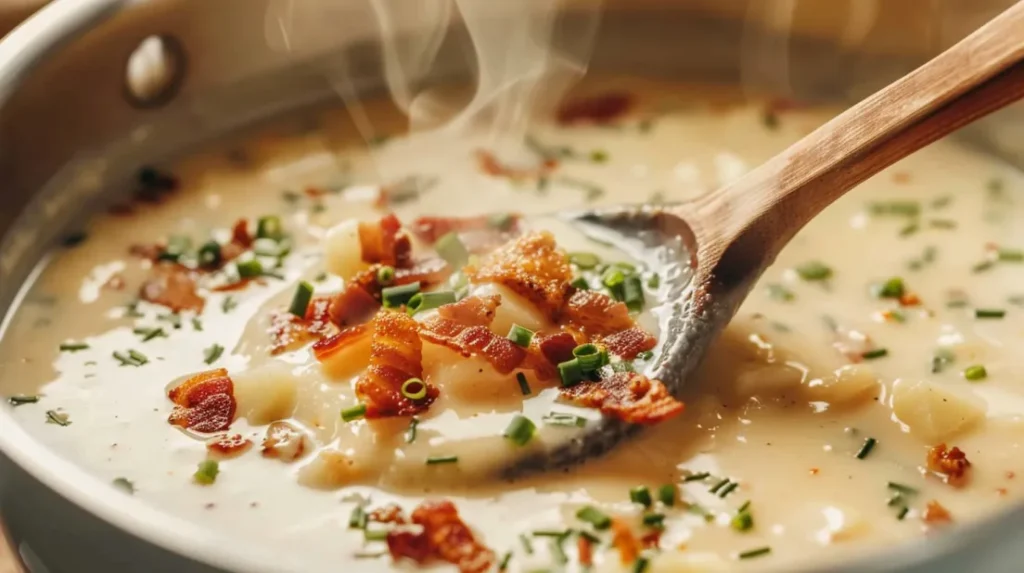 You know that feeling when you walk into your grandma’s kitchen and something smells like pure comfort? That’s this soup. We’re talking loaded baked potato vibes but in a bowl you can actually slurp. It’s creamy, chunky, loaded with bacon (obviously), and topped with all the good stuff that makes a baked potato legendary. This isn’t just soup — it’s a warm hug on a cold day, a bad-mood fixer, and your new go-to when you need something that feels like home. Plus, it’s way easier than you think and tastes like you’ve been stirring it all day when really you’ve been binge-watching Netflix.
