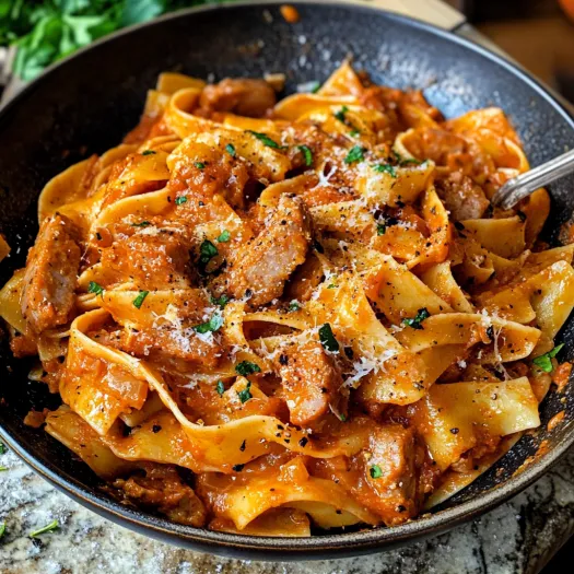 Think rich, creamy, spicy, and downright addictive. This Creamy Calabrian Chili Pappardelle with Sausage is the pasta you make when you’re tired of boring dinners and want something that hits every craving — a little heat, a lot of flavor, and just the right amount of indulgence. The wide ribbons of pappardelle soak up the silky chili-kissed sauce like a dream, while the crumbled Italian sausage brings the savory punch. It’s fiery, creamy, and comforting in all the best ways. If pasta could be flirty, this one’s giving smolder.