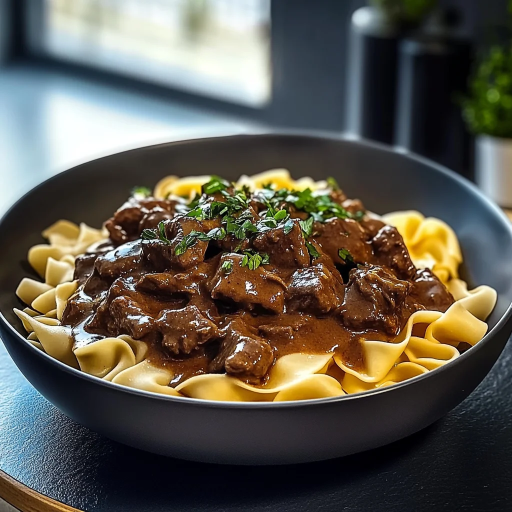 Step By Step Recipe: Delicious Beef Stroganoff over Creamy Egg Noodles