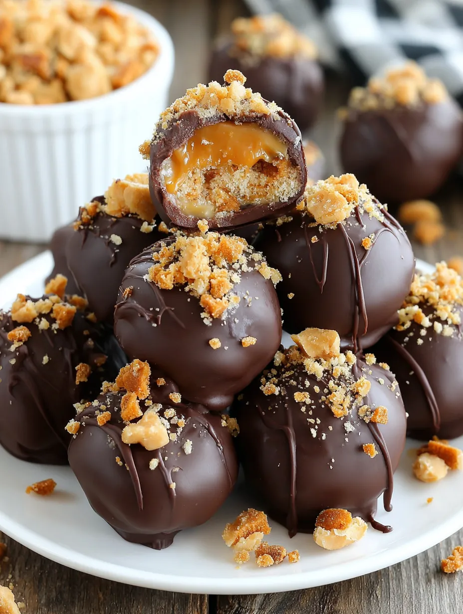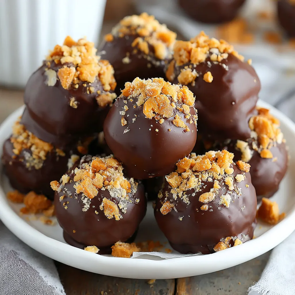 The contrast of creamy interior and hard chocolate shell is what makes these so satisfying. Every bite gives you crunch (Butterfinger), cream (filling), and snap (chocolate).