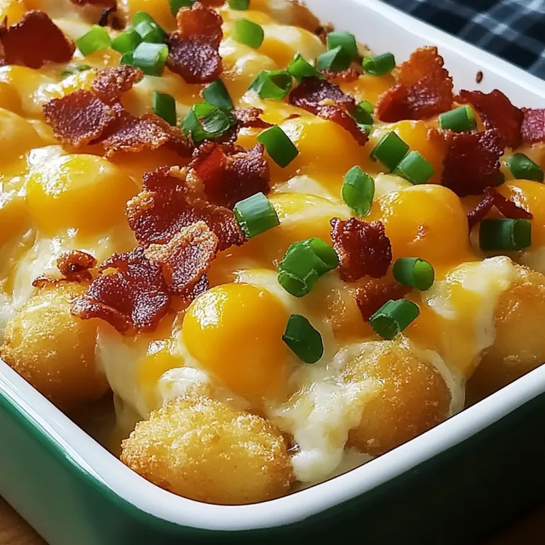 Prep Ahead: Assemble everything except the tater tots, cover, and refrigerate for up to 24 hours. Add tots and bake when ready.