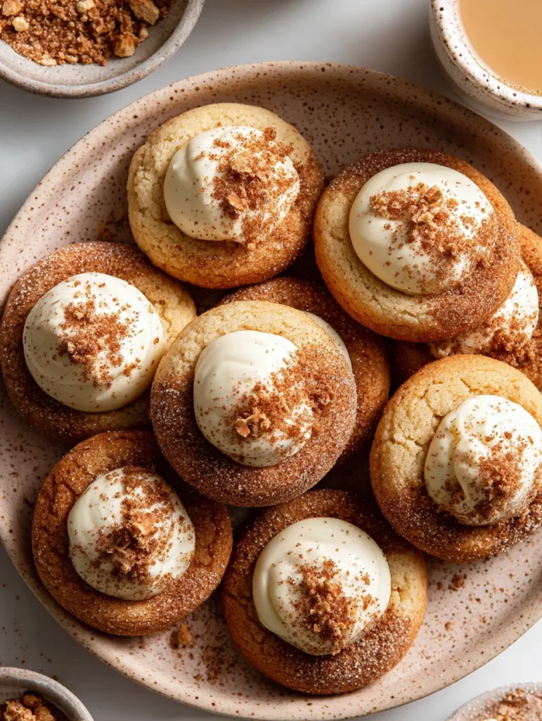 Okay, so someone looked at snickerdoodles—which are already perfect—and eggnog—which is divisive but beloved—and said “what if we combined these AND added a creamy filling?” And somehow, SOMEHOW, this insane idea resulted in these absolute showstoppers. Eggnog Snickerdoodle Thumbprint Cookies are basically soft, cinnamon-sugar cookies with warm holiday spices, pressed with your actual thumb (hence the name, genius), then filled with a silky eggnog buttercream that tastes like Christmas in a piping bag. They’re soft, spiced, sweet, festive, and so pretty you’ll want to photograph them from every angle before eating them. I made these for a holiday potluck once and someone accused me of buying them from a fancy bakery and lying about it. Another person ate five and then asked if I was single. These cookies have POWER.