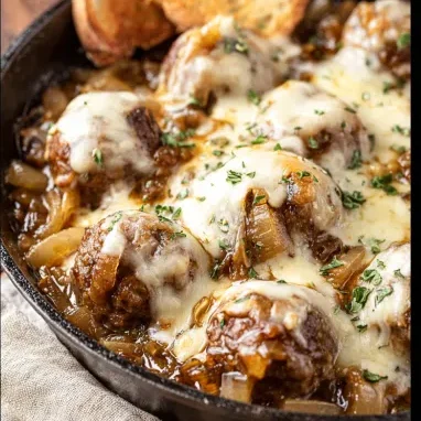 We’re talking tender, juicy meatballs swimming in a rich, caramelized onion gravy that’s been simmered to perfection, then topped with a blanket of melted Gruyère cheese that gets all bubbly and golden. It’s comfort food that thinks it’s fancy, but honestly? It’s just really, really good. Serve it over mashed potatoes, egg noodles, or just grab a spoon and go to town. No judgment here.