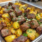 Alright, so imagine taking perfectly seared, bite-sized pieces of tender steak and crispy, golden potatoes, then tossing them all together in the most incredible garlic butter sauce that’ll make you want to lick the skillet clean. These Garlic Butter Steak Bites with Potatoes are basically what happens when you want a steakhouse-quality meal but don’t want to mess with a full steak dinner. We’re talking juicy steak pieces with that perfect crust, crispy-on-the-outside-fluffy-on-the-inside potatoes, and enough garlicky, buttery goodness to make every bite taste like pure heaven. It’s a complete meal in one pan that comes together fast enough for a weeknight but feels fancy enough for date night. Plus, there’s something about eating steak in bite-sized pieces that just makes it more fun.