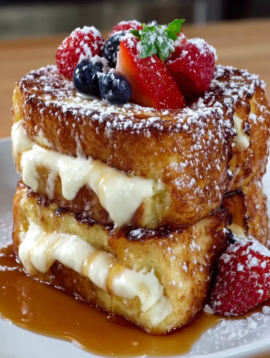 Stuffed Version: Slice rolls almost in half, stuff with cream cheese and strawberries before dipping in custard.
