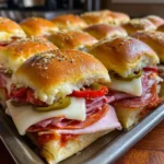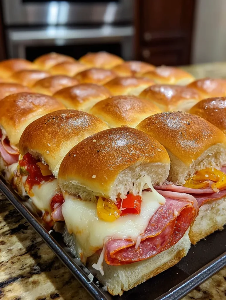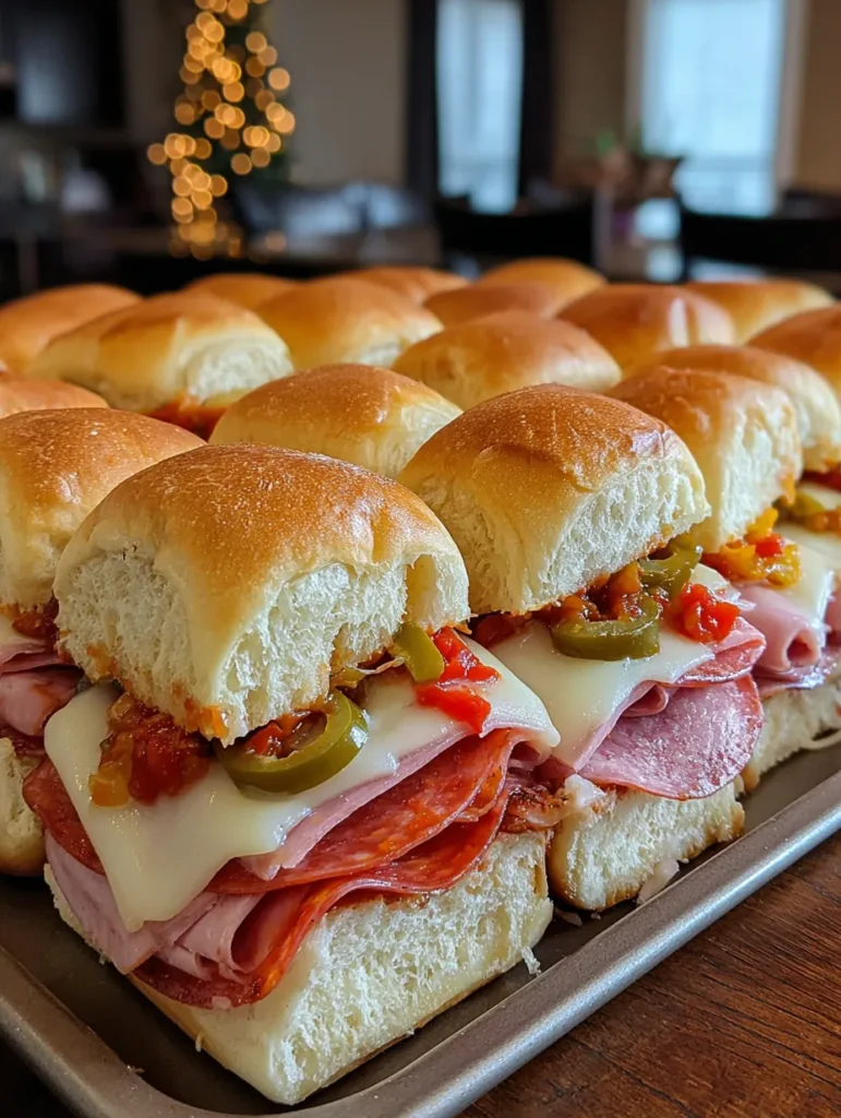 Okay, so imagine all the best parts of an Italian sub — the salty meats, melty cheese, tangy peppers, and that unbeatable combo of oil and vinegar — but baked into slider form with buttery, garlicky tops that get all golden and crispy. These bad boys are basically party food royalty. You make a whole pan at once, which means less work and more time to actually enjoy yourself. They’re perfect for game day, potlucks, family gatherings, or honestly just a Tuesday when you want something that feels special but requires minimal effort. Warning: people will hover around the pan like seagulls, so maybe make two batches.
