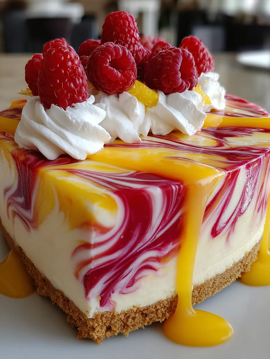 Picture this: a silky lemon cheesecake that’s like sunshine in dessert form, swirled with vibrant raspberry ribbons that look like edible art, all sitting on a buttery graham cracker crust. This is the cheesecake you make when you want people to gasp when you bring it to the table. The lemon is bright and tangy without being aggressive, the raspberry adds that gorgeous color contrast and tart-sweet pop, and those swirls? They’re easier to create than you’d think but make you look like a pastry genius. I made this for Easter brunch once and my aunt literally took a photo before eating it because she said it was “too beautiful to destroy.” Then she destroyed it anyway and asked for seconds. Someone else said it tasted like “fancy spring had a baby with delicious.” Another person just kept saying “how are you SINGLE?” while pointing at the cheesecake. This dessert makes people say weird things and I’m here for it.