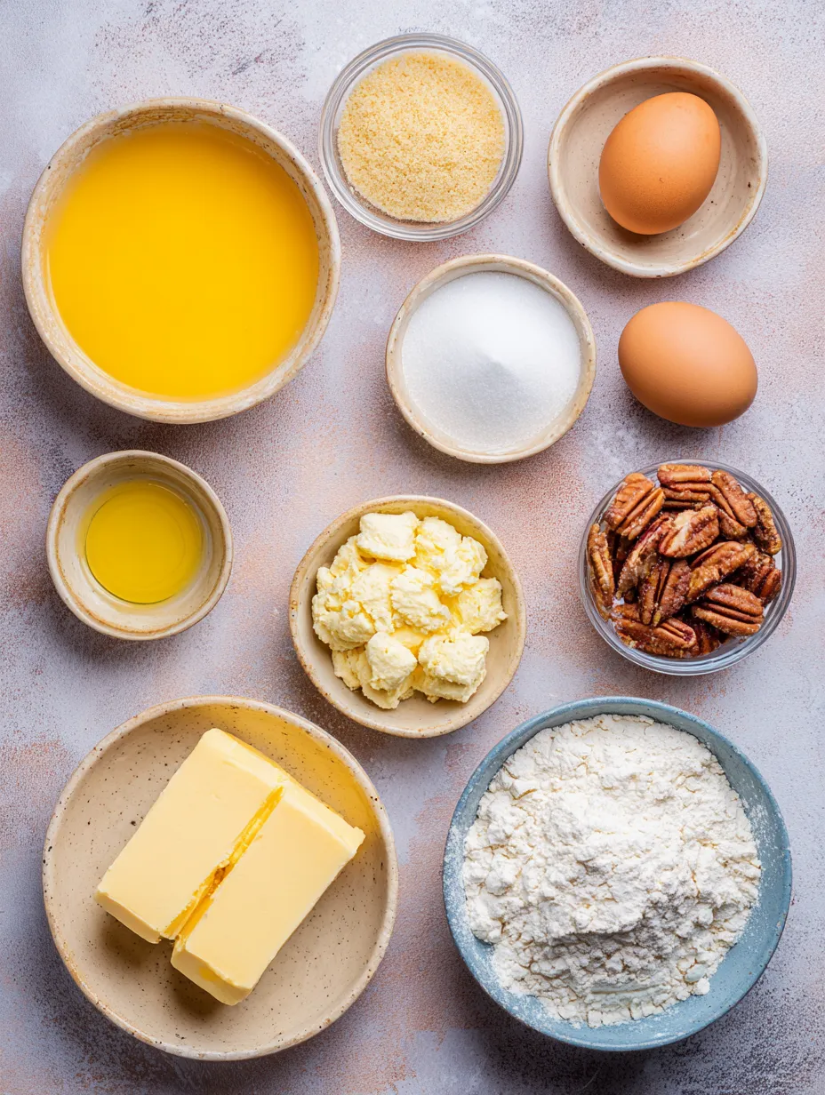 Corn syrup prevents crystallization and creates that smooth, glossy texture. Brown sugar adds molasses depth and caramel notes. Eggs bind everything together and help the filling set as it bakes. The butter adds richness and helps carry flavors.