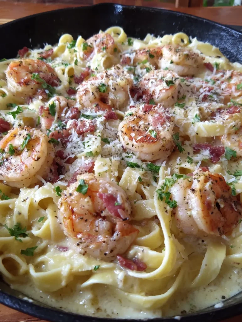 This is the answer to every weeknight dinner prayer you’ve ever had. We’re talking restaurant-quality shrimp fettuccine alfredo that happens entirely in one pan – no boiling pasta in a separate pot, no juggling multiple burners, no mountain of dishes afterward. Just perfectly cooked shrimp, silky fettuccine, and the most luscious, garlicky alfredo sauce that clings to every noodle like it was meant to be there.
