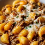 Get ready to meet your new weeknight dinner obsession. This One Pot Cheesy Beef Shells is basically what happens when comfort food decides to make your life easier while still delivering maximum deliciousness. We’re talking tender pasta shells swimming in a rich, cheesy sauce with perfectly seasoned ground beef, all cooked in one glorious pot that somehow manages to be both incredibly satisfying and ridiculously simple. It’s like a hug from your favorite Italian grandmother, but with less guilt about the mess because there’s literally only one pot to clean. The shells hold onto all that cheesy, beefy goodness in their little pasta pockets, creating the perfect bite every single time. Fair warning: this is the kind of meal that makes you want to do a little happy dance in your kitchen while you eat.