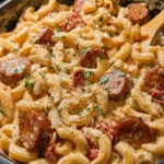 Okay, so picture this: someone took spicy Cajun sausage, ranch seasoning, cream, and pasta, threw them all in one pot, and created the ultimate comfort food mashup that tastes like it took hours but actually took 25 minutes. One-Pot Creamy Cajun Ranch Sausage Pasta is basically what happens when Southern comfort food meets ranch dressing meets your desperate need for dinner to cook itself. The sausage gets browned and crispy, the pasta cooks directly in the creamy sauce (one pot, people!), and everything gets coated in this smoky, tangy, perfectly spiced cream sauce that’ll make you want to lick the pan. The Cajun seasoning brings heat and depth, the ranch adds tang and familiarity, and the whole thing is ridiculously creamy without being heavy. I made this on a Tuesday when I had zero energy and it became my most-requested recipe. Someone asked if I’d secretly ordered takeout. Another person claimed it was better than any restaurant pasta they’d ever had. This pasta causes disbelief and requests for seconds.
