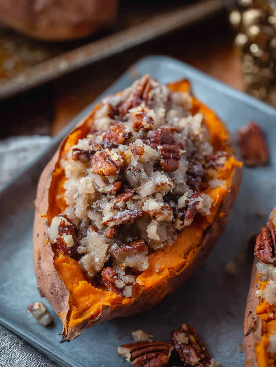 Generously spoon the pecan mixture over each stuffed sweet potato. Really pile it on—don’t be stingy with the pecans. This is what makes them special.