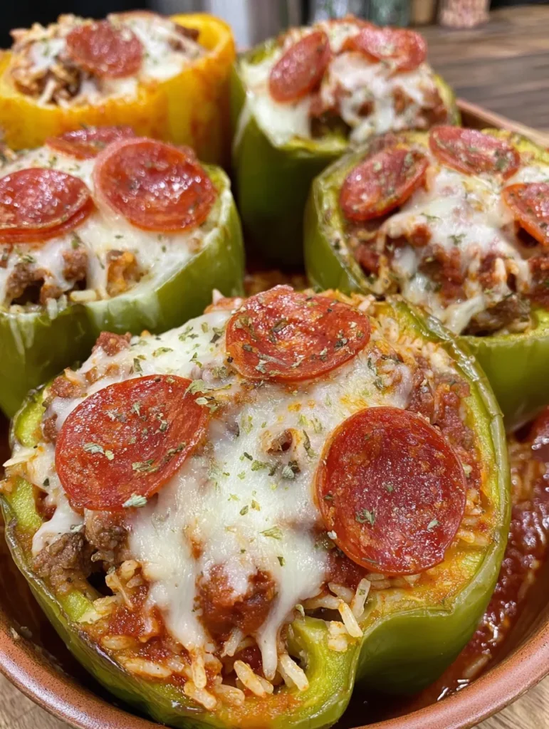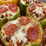 Okay, so imagine taking all the best parts of pizza night — gooey cheese, savory pepperoni, rich marinara sauce, Italian seasonings — and stuffing it all into bell peppers instead of piling it on dough. These Pizza Stuffed Peppers are basically what happens when you want pizza but also want to feel like you’re eating something moderately healthy (spoiler: those peppers totally count as vegetables). We’re talking tender bell peppers filled with seasoned ground beef or sausage, all your favorite pizza toppings, and enough melted mozzarella to make you do a happy dance. It’s low-carb but doesn’t taste like you’re sacrificing anything, and honestly? They’re way more fun to eat than regular pizza. Plus, each pepper is basically a personal pizza boat, so everyone can customize their own with their favorite toppings.