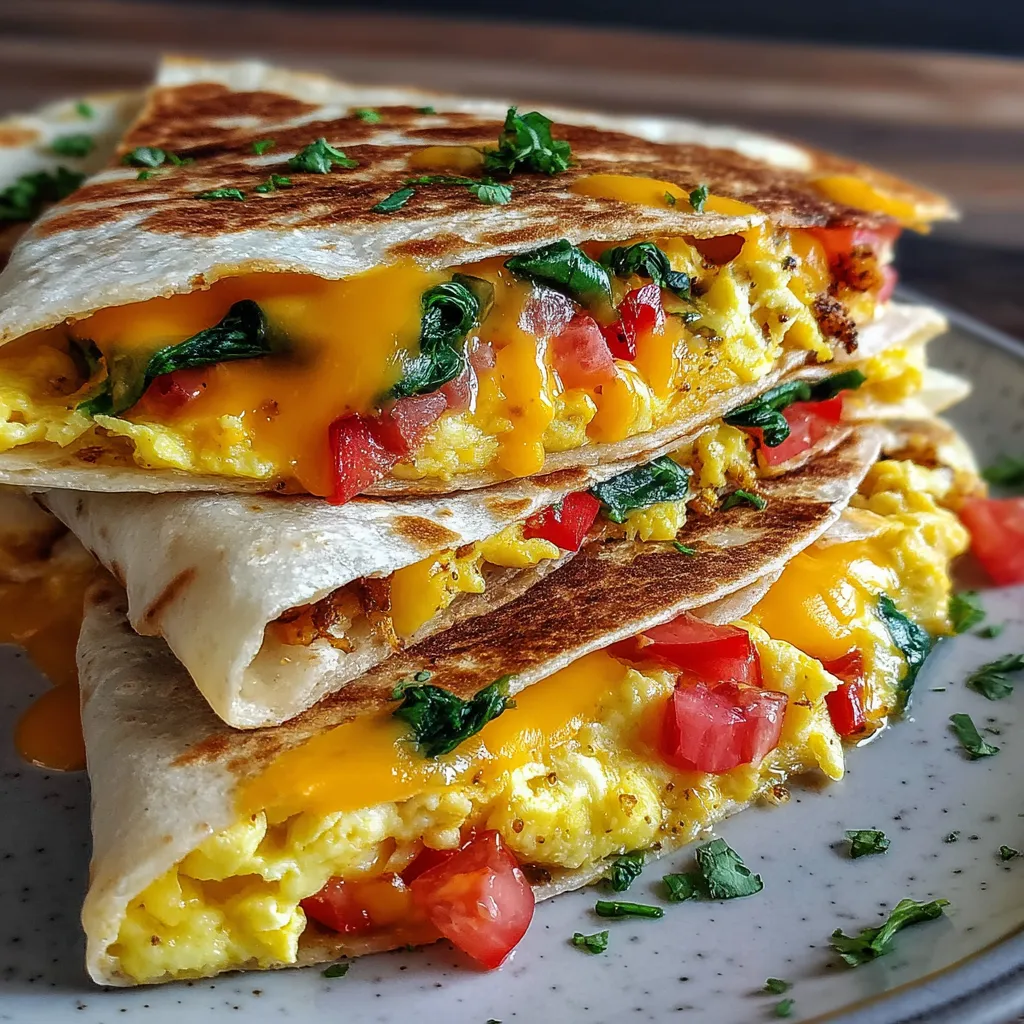 Okay, so someone looked at regular quesadillas and thought “why are we limiting this genius to lunch and dinner?” and thus the breakfast quesadilla was born. This is what happens when scrambled eggs, melty cheese, and crispy tortillas team up to save your morning from boring cereal or sad toast. We’re talking fluffy scrambled eggs loaded with peppers, onions, cheese, and whatever else you can grab from your fridge, all wrapped up in a crispy, golden tortilla that holds together like a burrito but tastes way better. It’s portable, customizable, takes like 10 minutes to make, and can be eaten with one hand while you’re running out the door pretending you have your life together. I made this on a weekday once and my roommate literally said “why have we been eating granola bars when THIS exists?” Another time I brought these to a brunch potluck and three people asked for the recipe. It’s eggs in a tortilla, people. But also, it’s SO MUCH MORE.