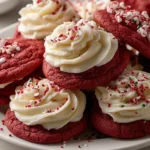 Okay, so imagine if red velvet cake decided to become a cookie, brought its signature cream cheese frosting along for the ride, and showed up looking like it belongs in a magazine spread. That’s what we’re dealing with here. Red Velvet Cookies with Cream Cheese Frosting are basically soft, pillowy cookies with that classic red velvet flavor—subtle cocoa, slight tanginess, gorgeous deep red color—topped with thick, tangy, sweet cream cheese frosting and finished with festive sprinkles. They’re the kind of cookies that make people stop and stare before eating them. The texture is cake-like but still has that satisfying cookie chew, the cream cheese frosting is sweet but balanced with tang, and they look so pretty you almost don’t want to eat them (almost). I made these for Valentine’s Day once and received three marriage proposals. Another time someone asked if I went to pastry school. These cookies inspire life commitments and professional assumptions.
