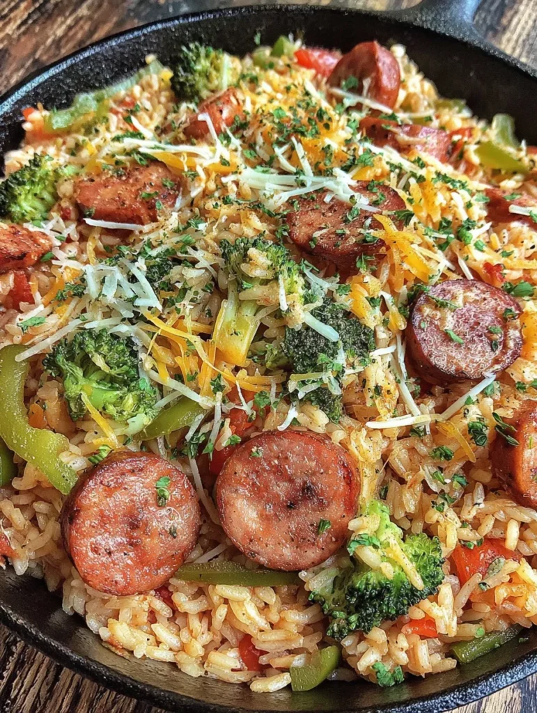 Let me introduce you to the ultimate one-pan wonder that’s about to save your weeknight sanity: Sausage Rice Skillet! We’re talking smoky, savory sausage mixed with perfectly cooked rice, colorful veggies, and just enough seasoning to make every bite interesting without being complicated. It’s like jambalaya’s easier, less fussy cousin who still knows how to party. Everything cooks together in one skillet, which means maximum flavor and minimal dishes — honestly, what more could you want? This is the kind of dinner that makes you feel like you’ve got your life together, even if you’re just winging it on a Tuesday.