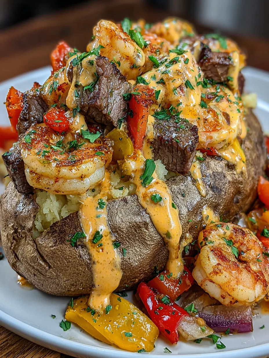 Steak Shrimp Loaded Baked Potato