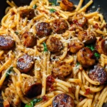 Okay, so imagine if honey garlic sauce and Italian sausage had a baby over perfectly cooked pasta, then invited butter, garlic, and soy sauce to make everything ridiculously delicious. That’s what we’re dealing with here. Sticky Honey Garlic Sausage Pasta Skillet is basically sliced sausage (spicy Italian, smoked, or whatever you love) coated in a glossy, sticky honey-garlic glaze with hints of soy sauce and ginger, all tossed with pasta and maybe some veggies for good measure. The sauce caramelizes onto the sausage creating crispy, sticky edges while coating the pasta in that sweet-savory-umami goodness. It’s the kind of dish that makes you lick your fork and seriously consider licking the pan. I made this on a random Wednesday once and my roommate declared it better than any restaurant pasta they’d ever had. Another time I brought leftovers to work and three people asked if I was starting a food business. This pasta inspires restaurant comparisons and entrepreneurial suggestions.