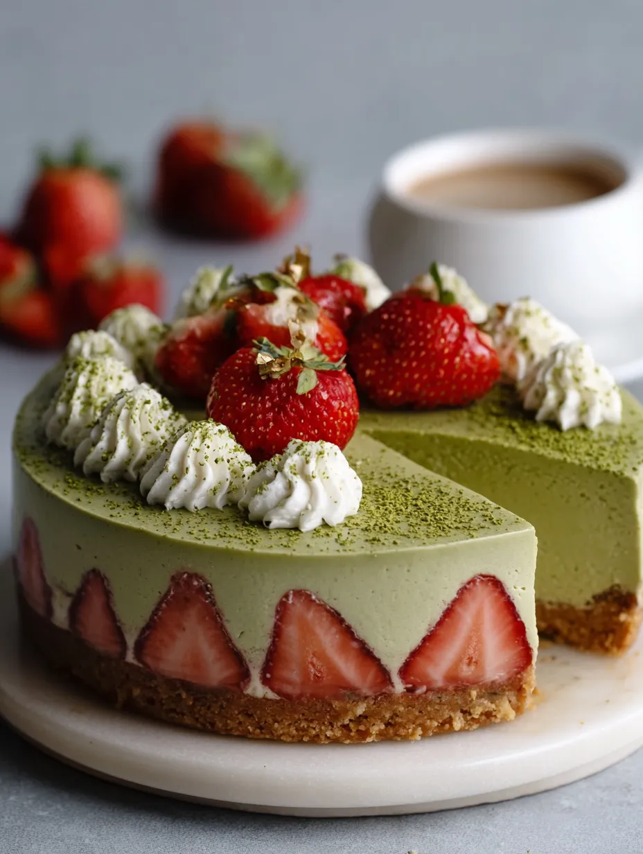 Matcha is rich in umami and has a complex flavor profile that’s enhanced by dairy. The cream cheese and sour cream create the perfect creamy vehicle for that green tea flavor. The strawberries aren’t just decoration—their acidity and sweetness are crucial to preventing the dessert from being too heavy or one-note.