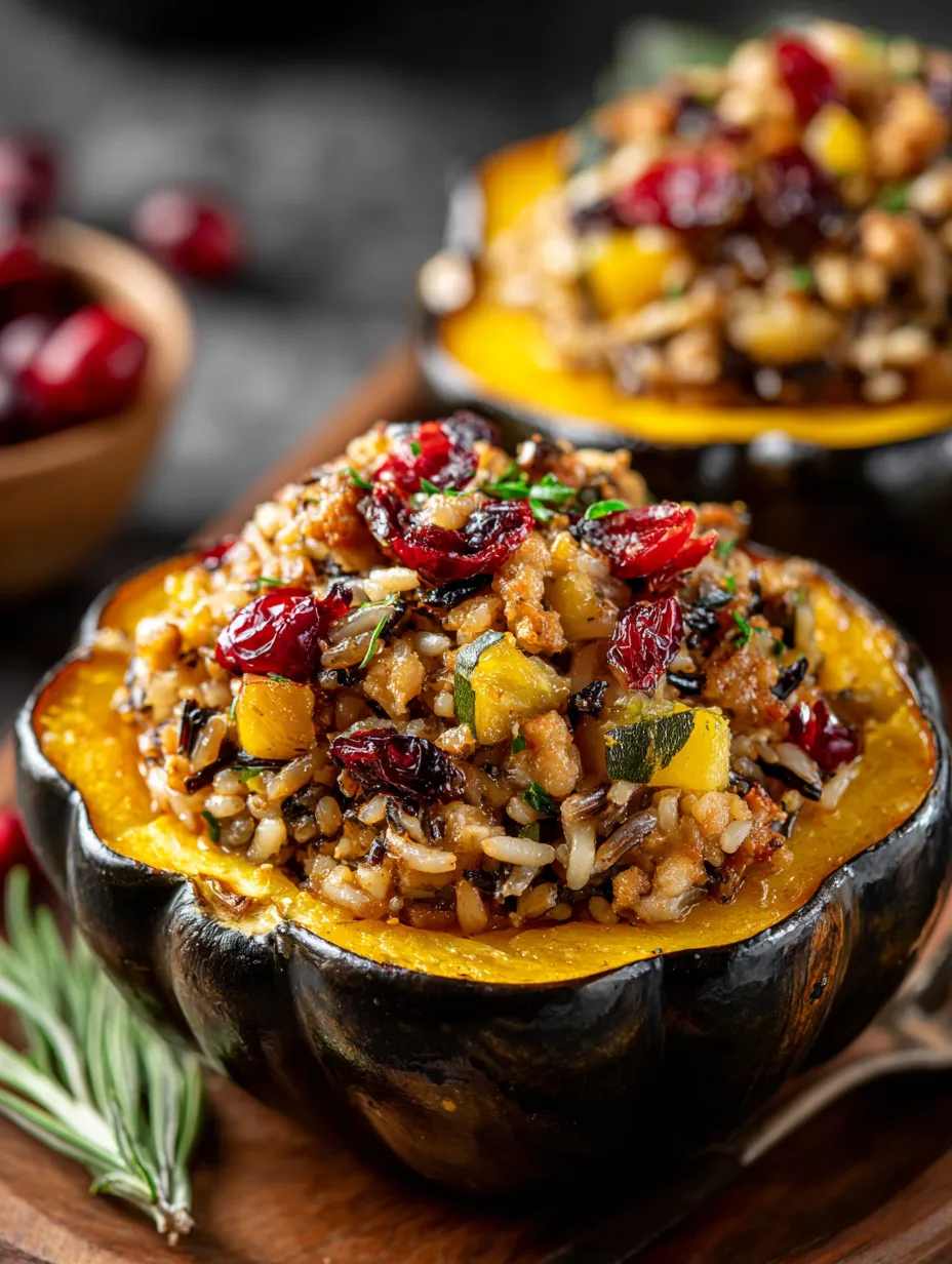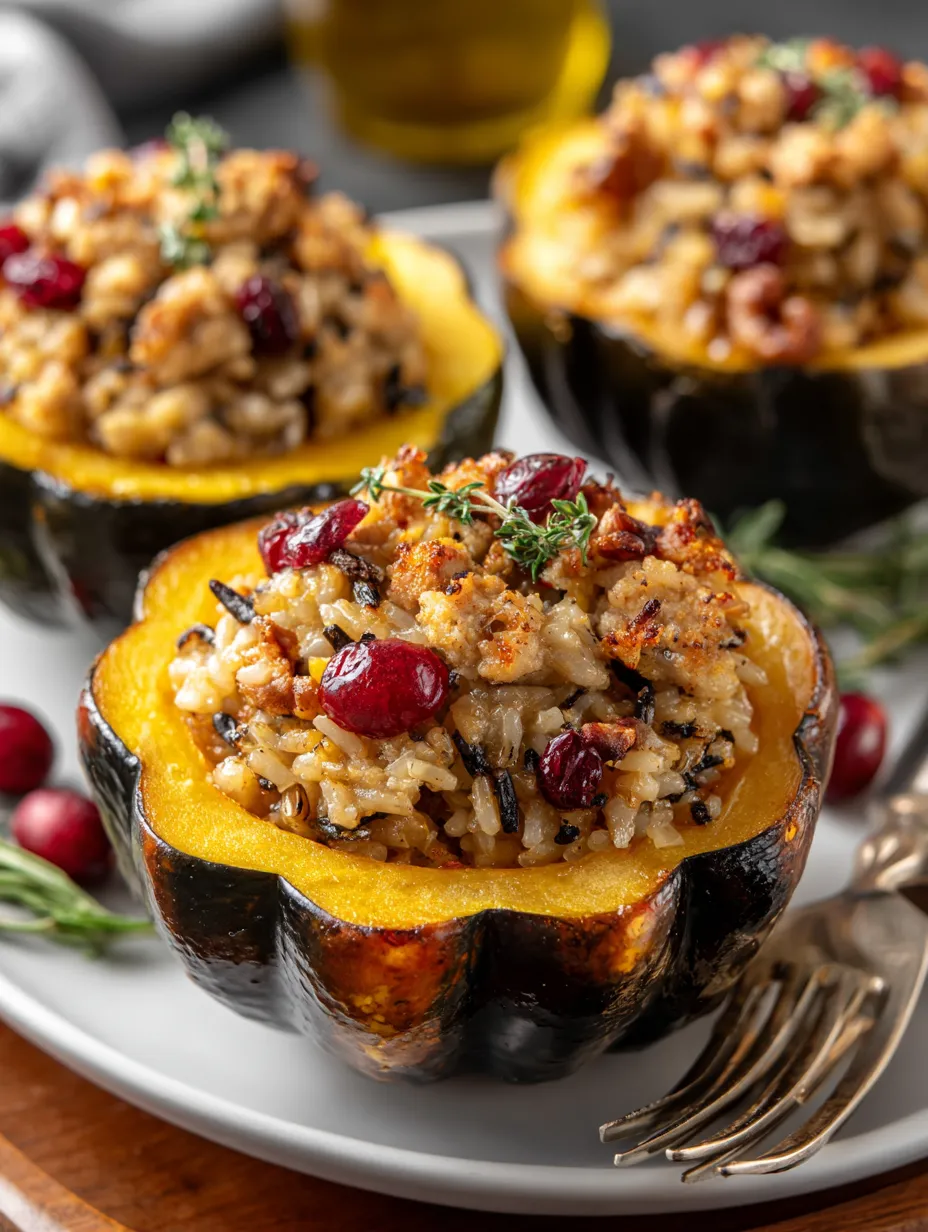 Alright, so imagine taking those gorgeous acorn squash halves and turning them into edible bowls filled with the most incredible fall-flavored stuffing you’ve ever tasted. This Stuffed Acorn Squash with Chicken Apple Sausage and Wild Rice is basically autumn on a plate — we’re talking sweet roasted squash, savory chicken sausage with hints of apple, nutty wild rice, dried cranberries for little bursts of sweetness, and toasted pecans for crunch. It’s the kind of dish that looks like it belongs on a fancy restaurant menu but comes together way easier than you’d think. Perfect for those nights when you want something cozy and seasonal that also happens to be impressive enough for company. Plus, each squash half is basically a perfect portion, so no fighting over who gets more of the good stuff.