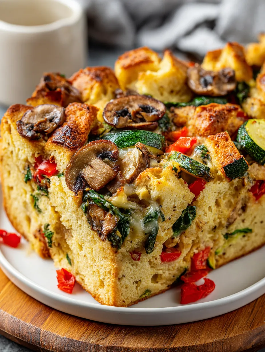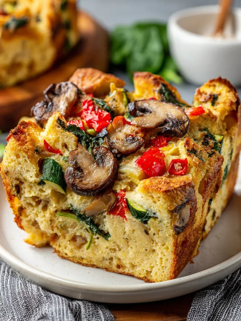 Hold up — before you think “vegan breakfast casserole” sounds boring, let me blow your mind. This is a fluffy, golden, absolutely satisfying morning masterpiece made with chunks of tangy sourdough bread soaked in a creamy cashew-based custard, loaded with sautéed veggies, and topped with melty plant-based cheese. It’s like French toast had a baby with a veggie scramble and decided to become the most epic brunch dish ever. Even your non-vegan friends are gonna be asking for seconds and the recipe. Plus, you make it the night before, so morning you just has to pop it in the oven and look like a breakfast genius.